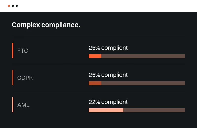 Fintech enterprises are confronted with a labyrinthine network of local, regional and global regulatory and compliance obligations (FTC, GDPR, AML, etc.). Even incorporating a singular attribute to a particular application can significantly alter the requisite regulatory framework, thereby presenting an onerous challenge for any organization, particularly a fledgling and resource-constrained startup.